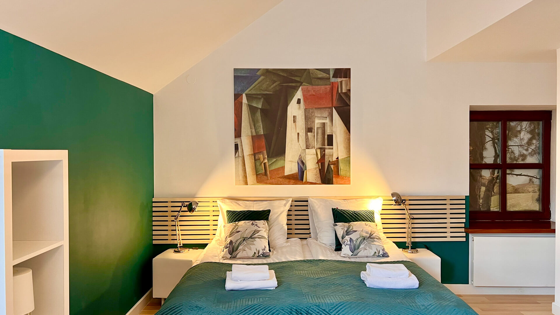 I poziom: łóżko małżeńskie, łazienka z prysznicem